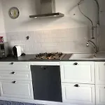 La pièce fournit une cuisine complète. Les hôtes peuvent se détendre sur une terrasse.